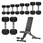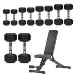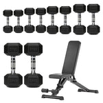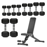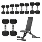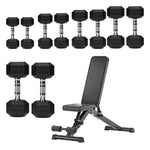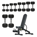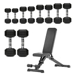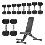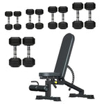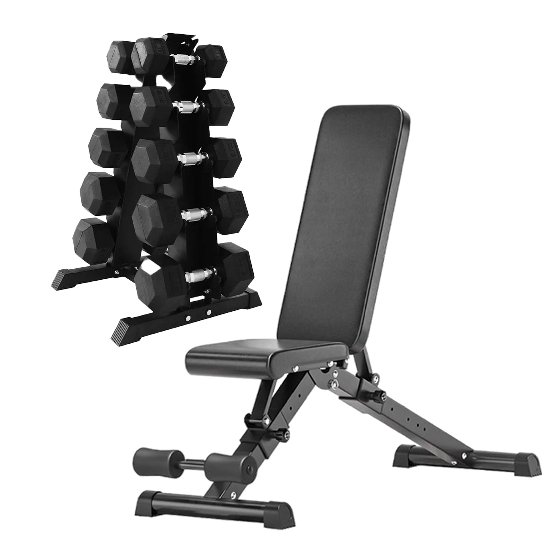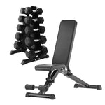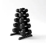 Hex Dumbbells 5 Tier Rack with or without Weights & Bench – Vertical Dumbbell Storage Stand for Home Gym