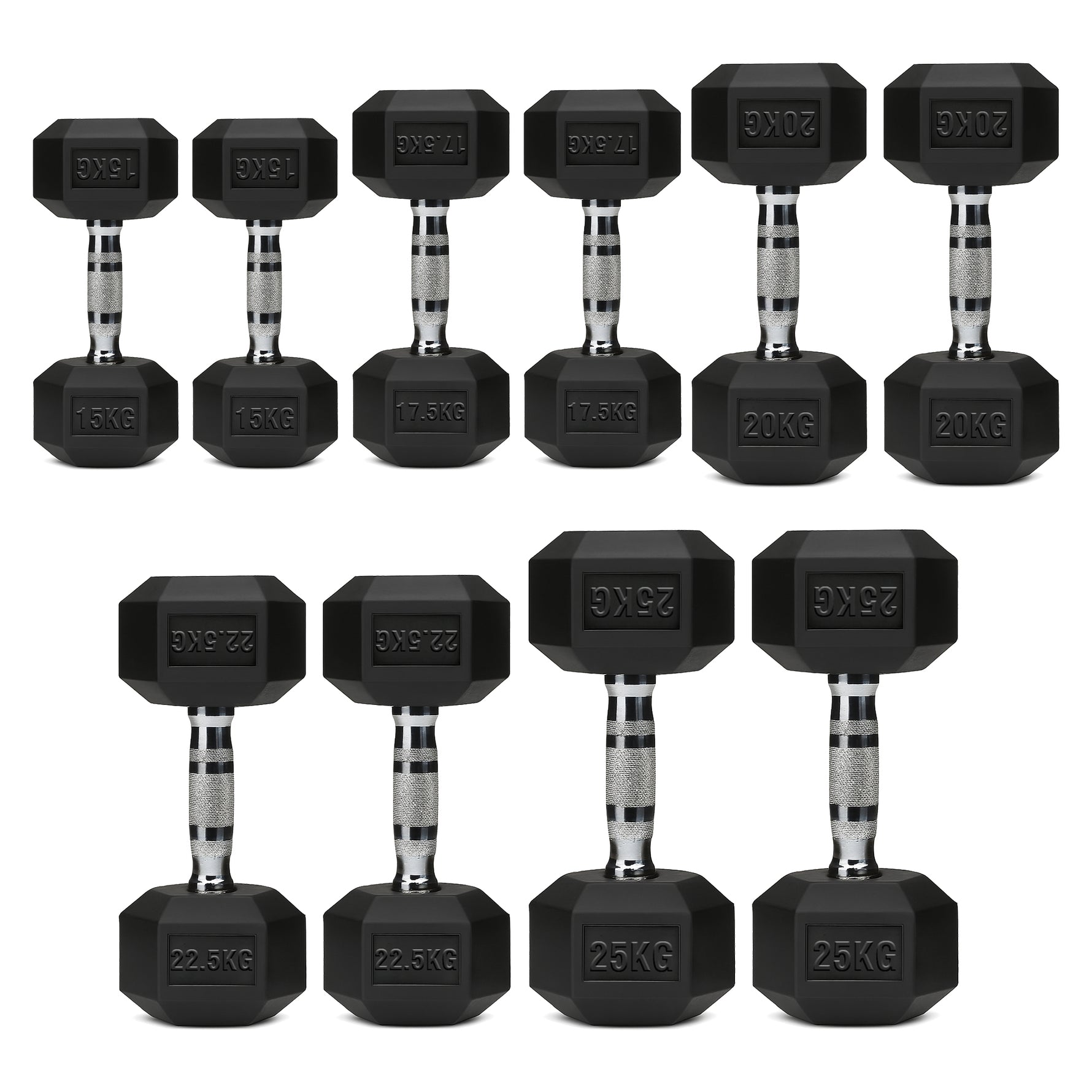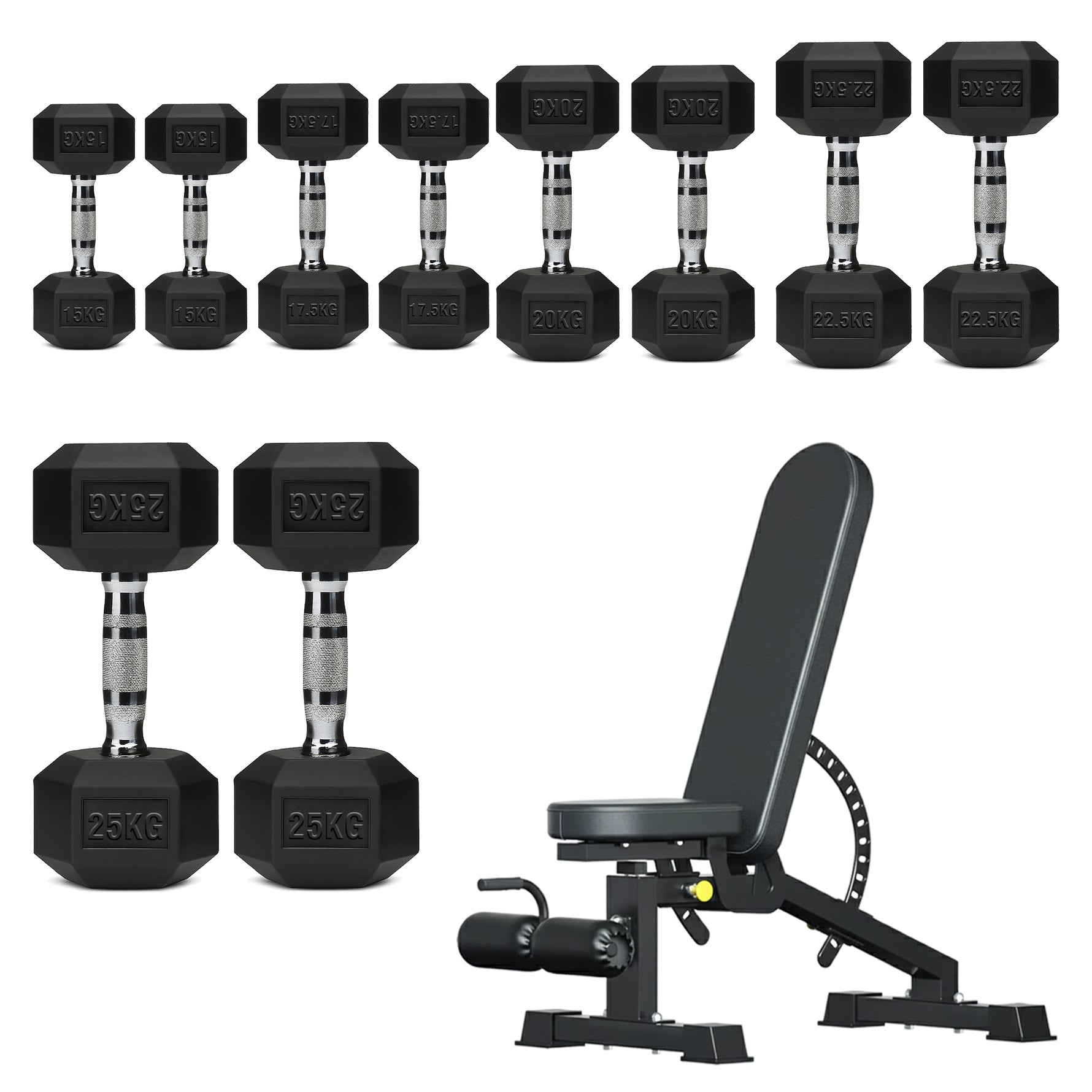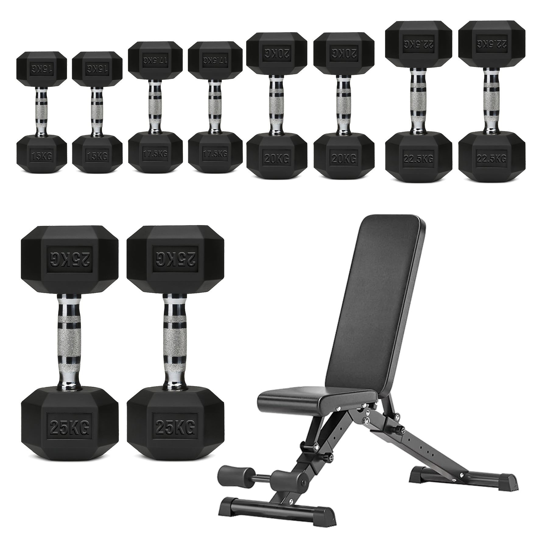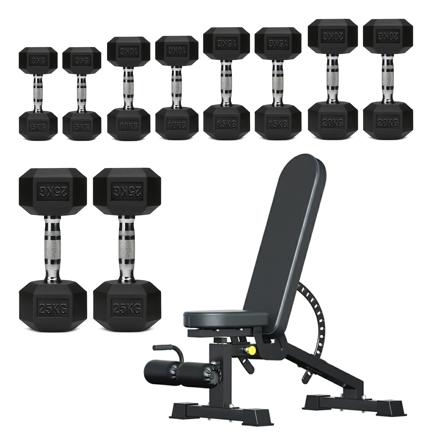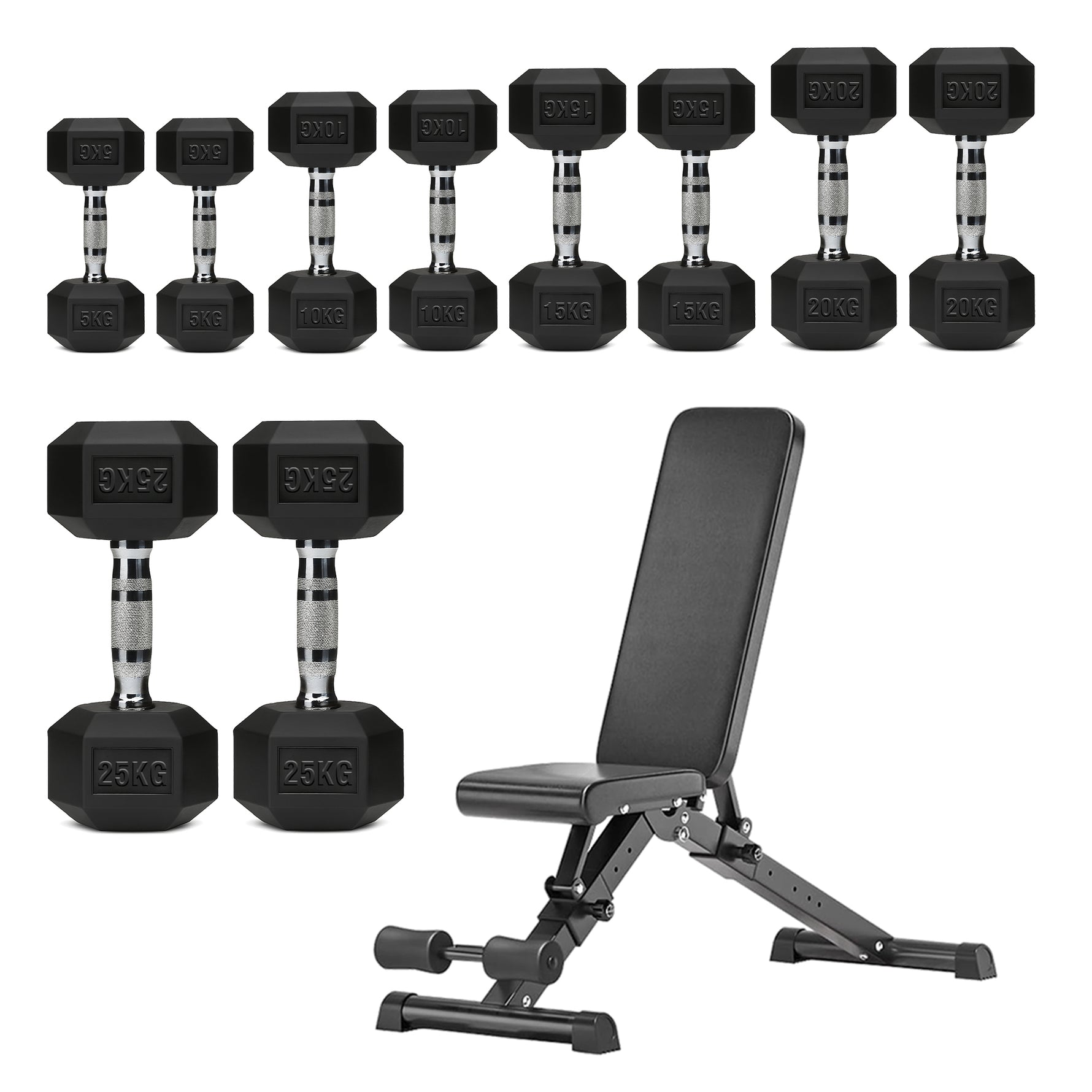 | 5–25kg | 150kg | 2×[5kg + 10kg + 15kg + 20kg + 25kg] |
