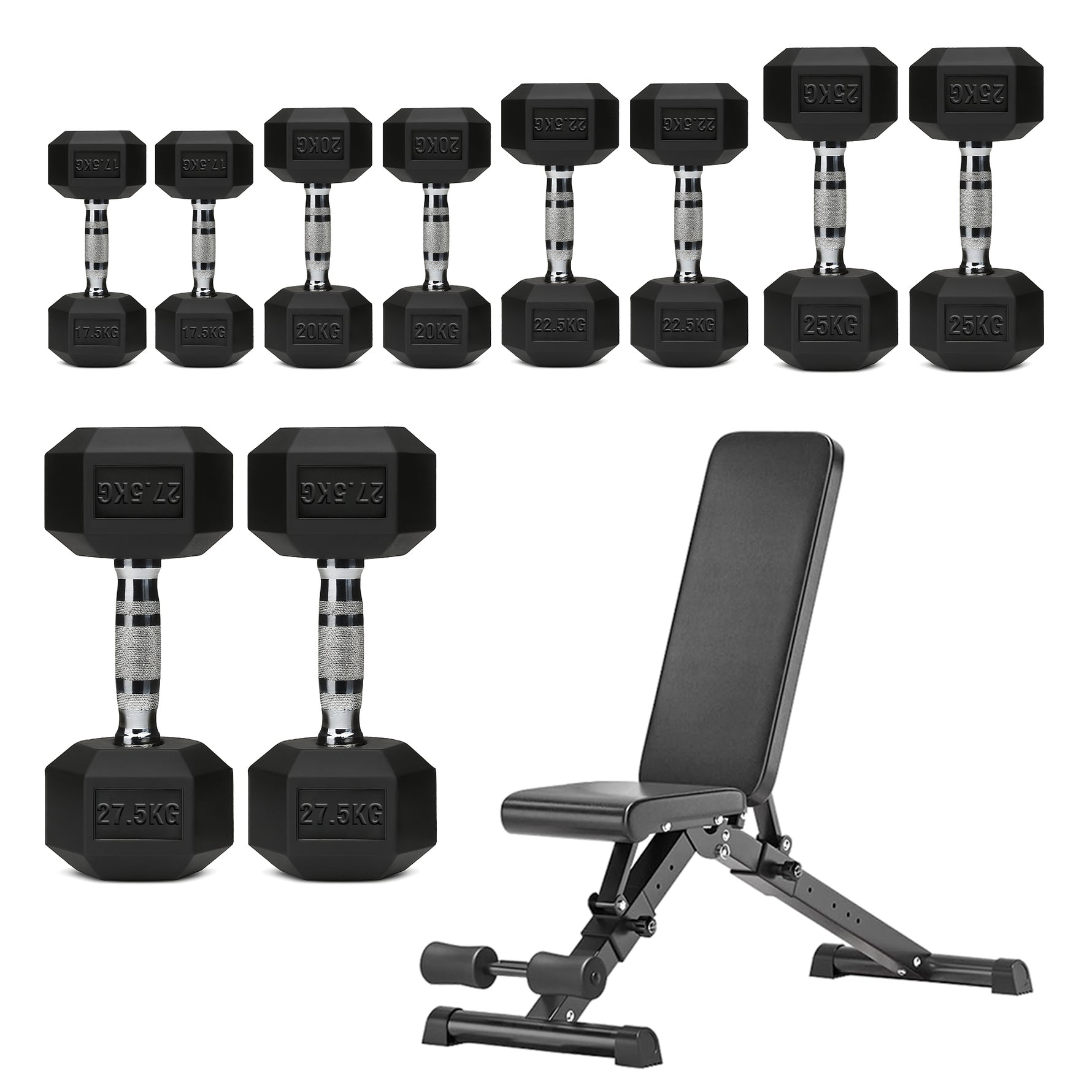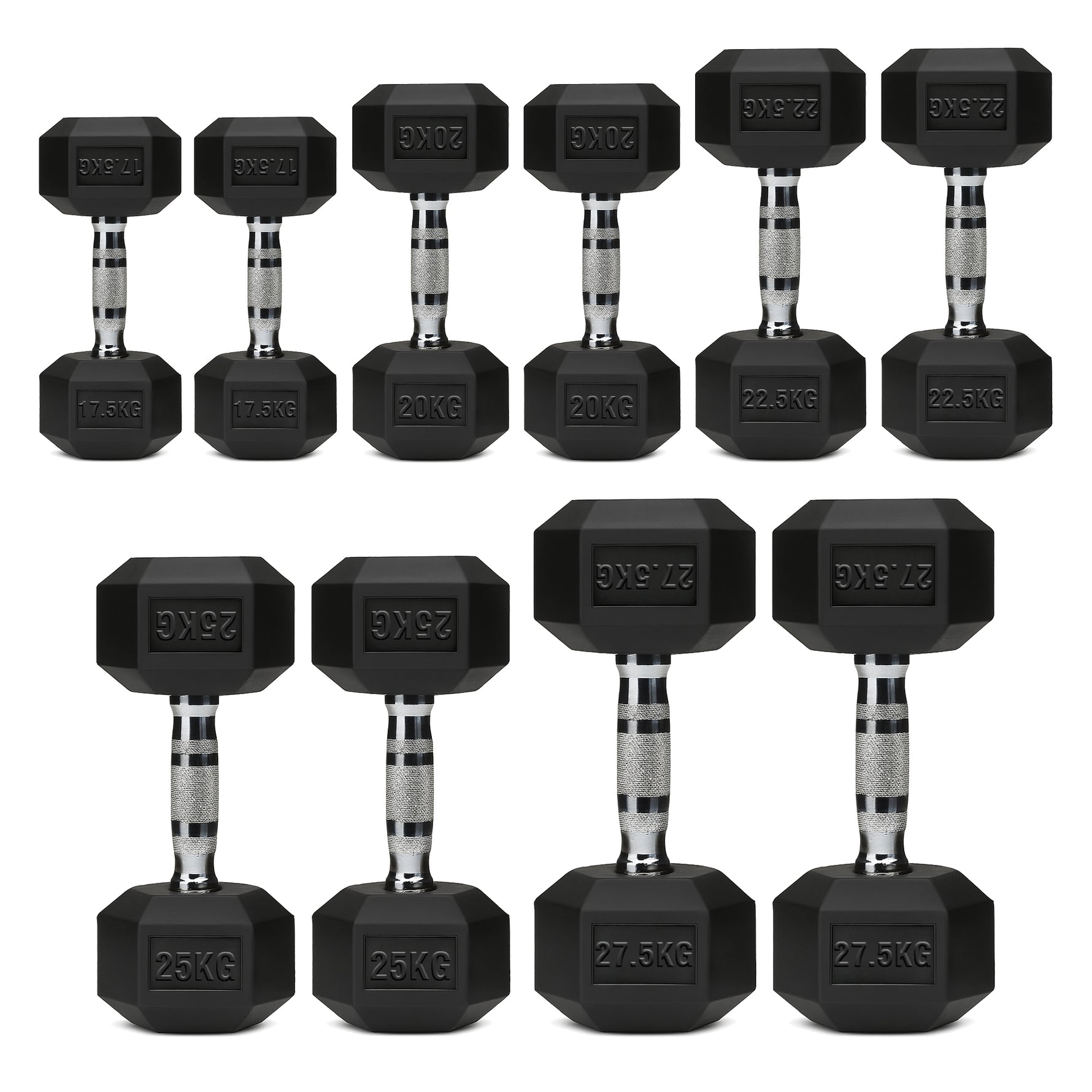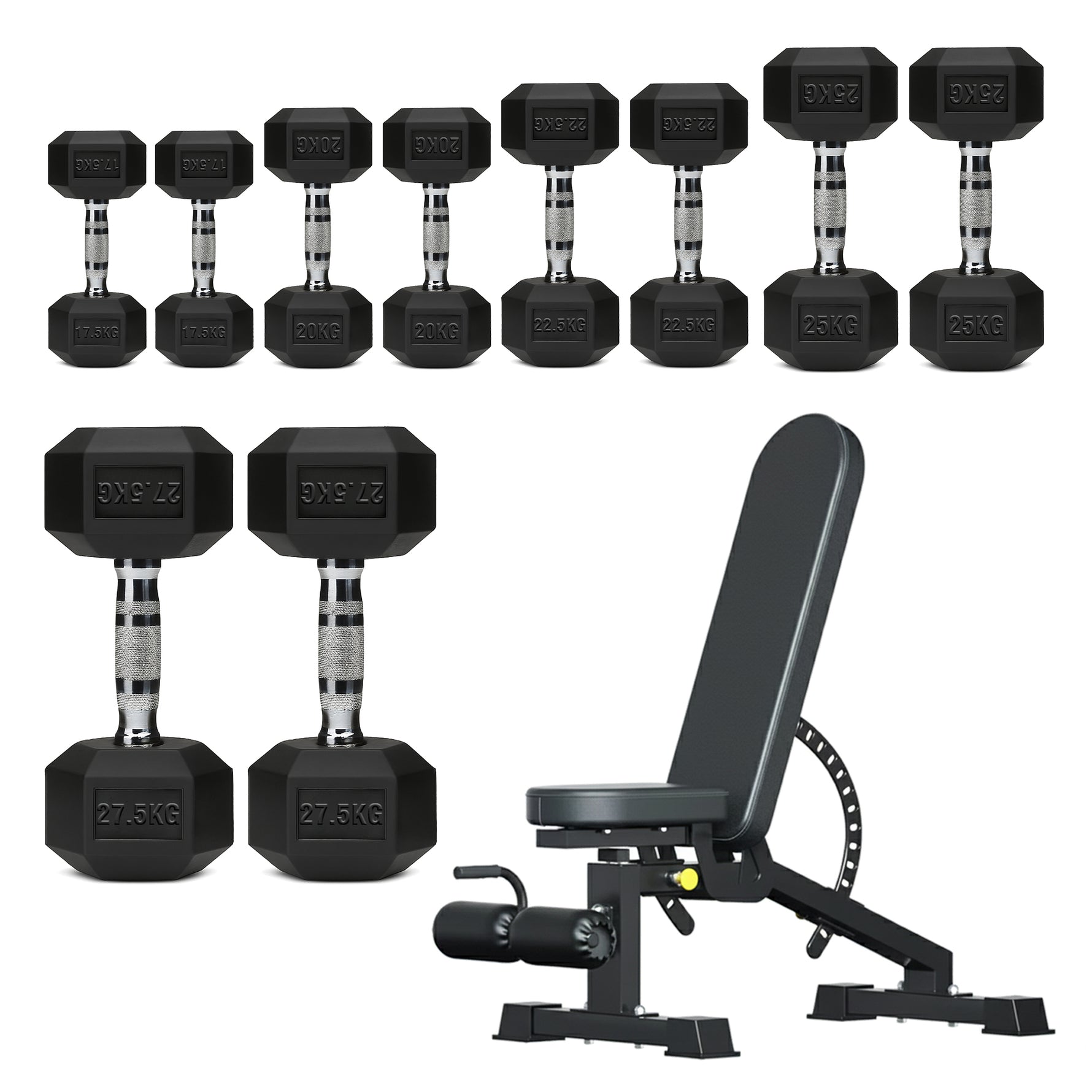 | 17.5–27.5kg | 245kg | 2×[17.5kg + 20kg + 22.5kg + 25kg + 27.5kg] |
