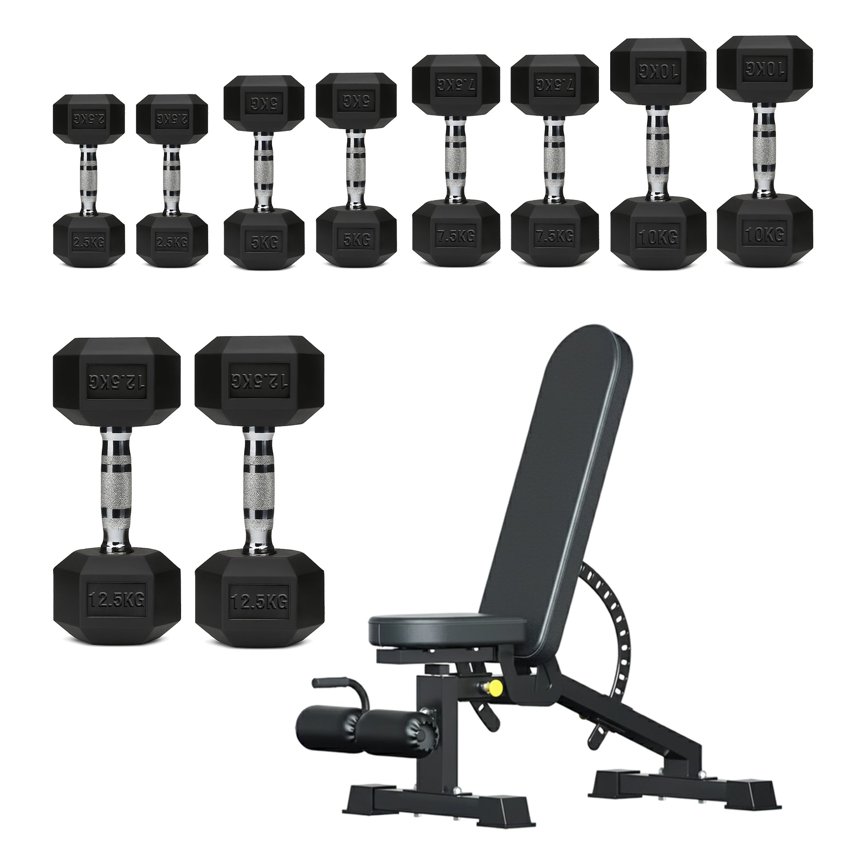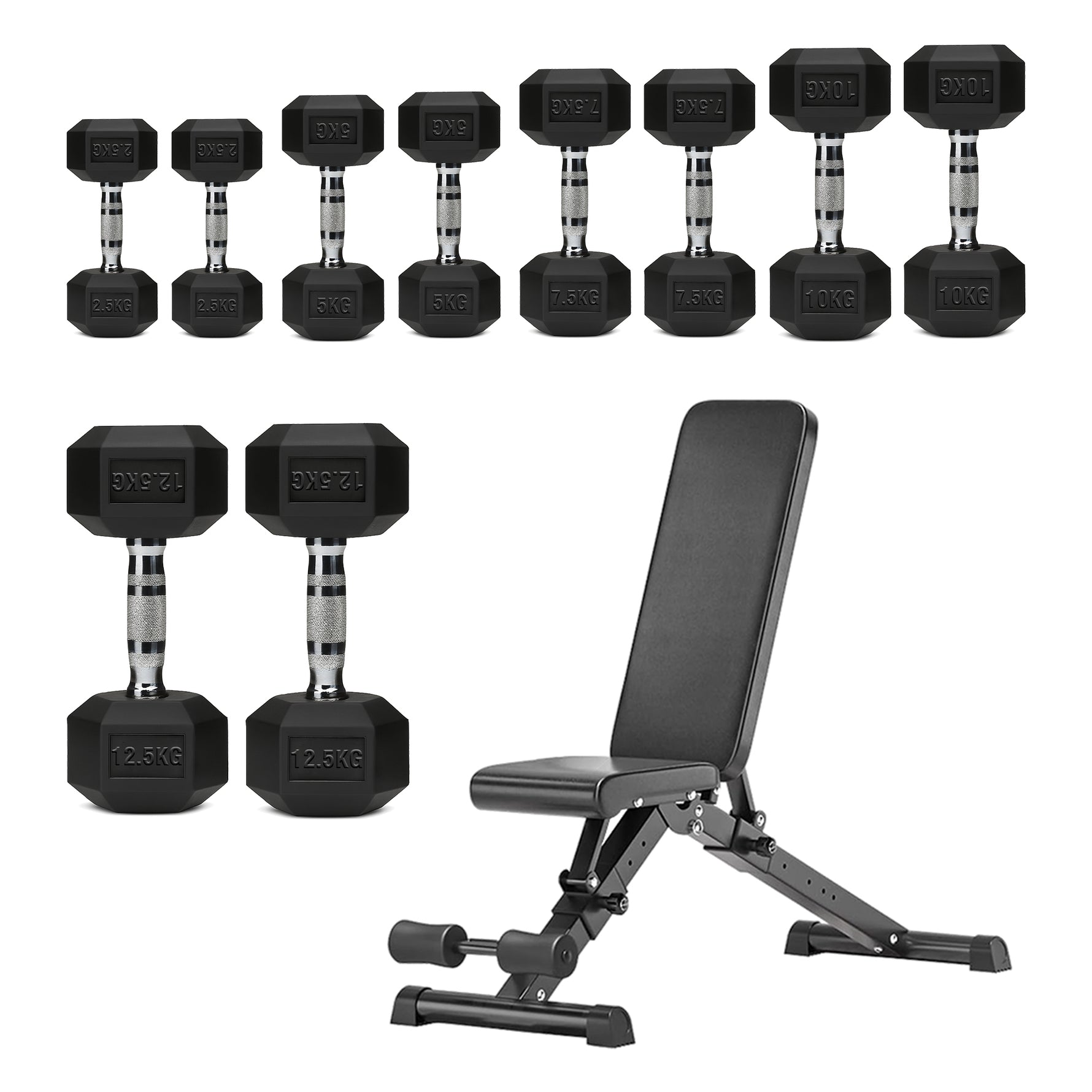 | 2.5–12.5kg | 75kg | 2×[2.5kg + 5kg + 7.5kg + 10kg + 12.5kg] |