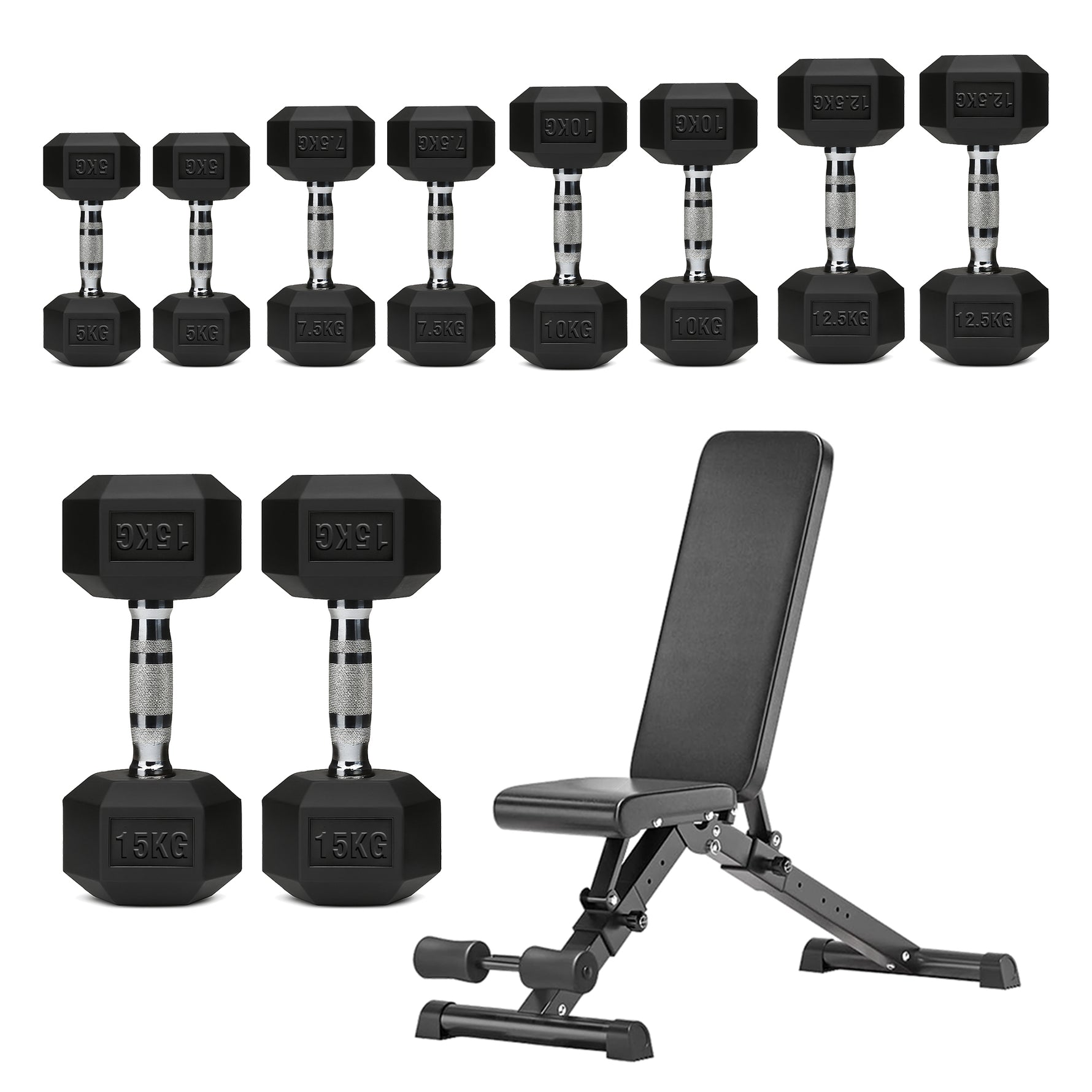 | 5–15kg | 100kg | 2×[5kg + 7.5kg + 10kg + 12.5kg + 15kg] |
