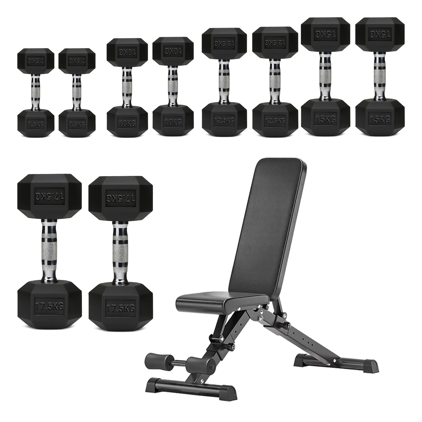 | 7.5–17.5kg | 125kg | 2×[7.5kg + 10kg + 12.5kg + 15kg + 17.5kg] |
