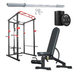 Versatile Design: Supports multiple exercises like squats, bench presses, dips, and pull-ups.