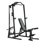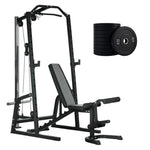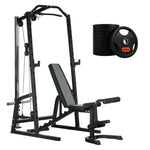 The adjustable height barbell rack provides flexibility for squats, presses, and rows, while the flat or inclined training bench allows you to customize workouts for chest, shoulders, and arms. The cable pulley system adds endless exercise variations for back, core, and functional strength training.