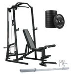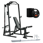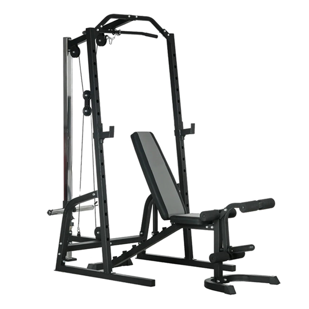 Train like a pro at home with the Smith Machine & Cable Pulley System with Adjustable Weight Bench — the ultimate multifunction strength station. Built with a durable power rack frame and a lat pull down system, this home gym setup supports safe and effective full-body training.