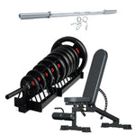 120kg 4×2.5kg + 4×5kg + 2×10kg + 2×15kg + 2×20kg 14 Plates